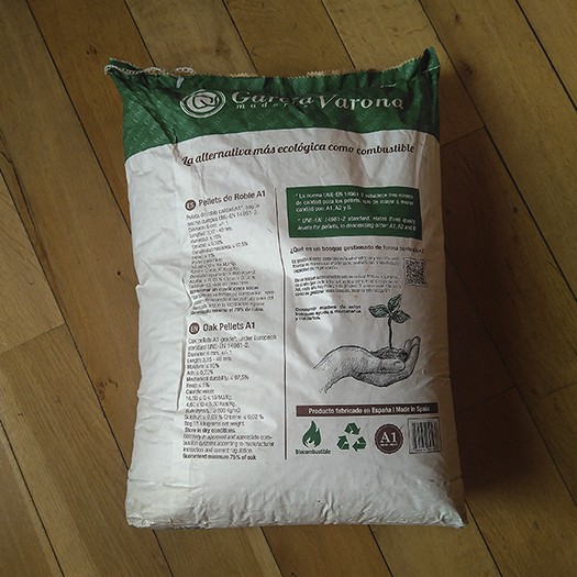 - Premium: Pellets de madera 100% natural, compuestos principalmente por frondosas y coníferas, con un mínimo del 75% de roble.