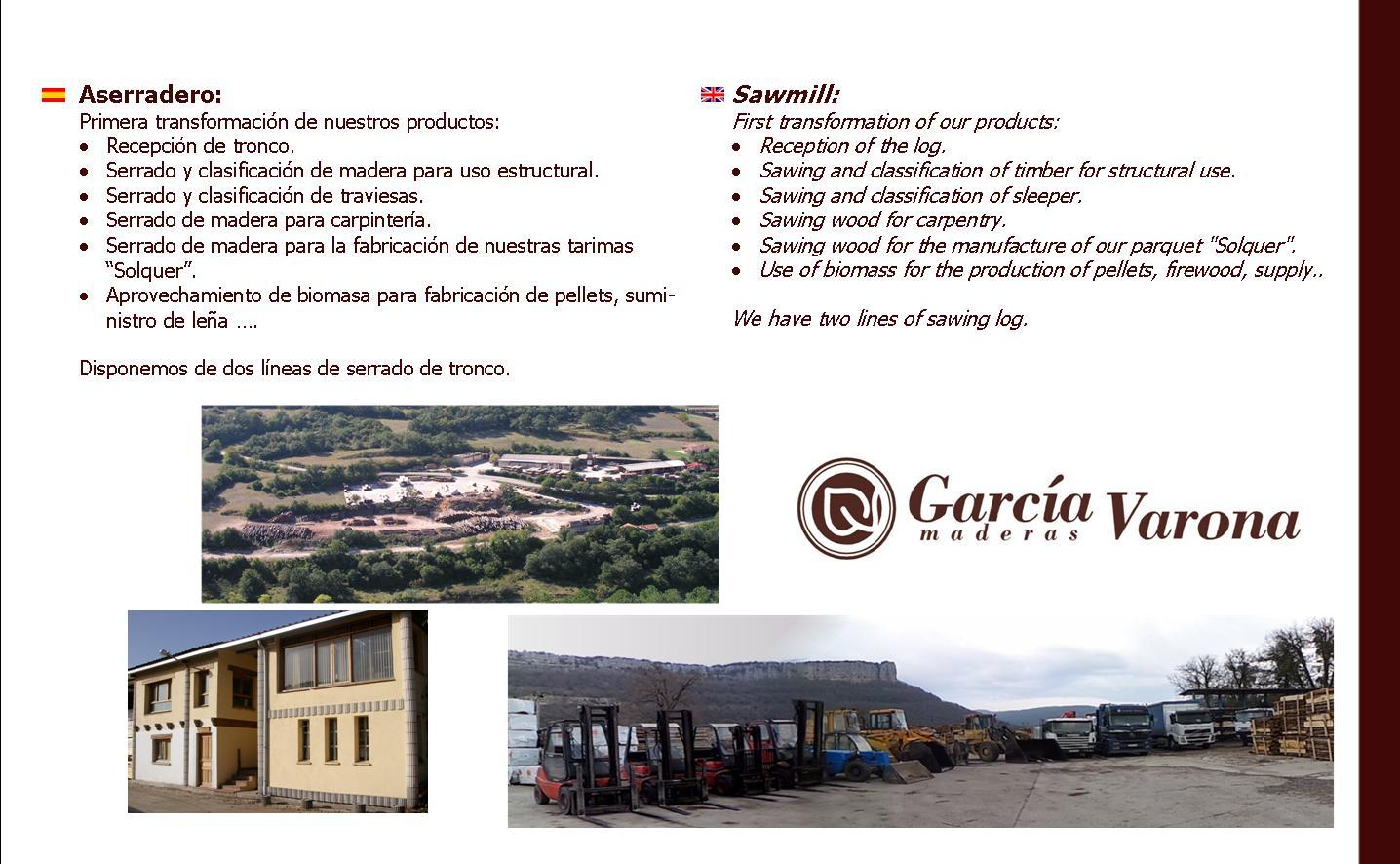 Desde hace ya mas de 50 años, Maderas García Varona ha ido creciendo, siendo en sus comienzos un pequeño aserradero, hasta convertirse en lo que es hoy, un grupo empresarial especializado en la fabricación de pavimento de madera maciza y madera aserrada para uso estructural buscando siempre conseguir la mejor relación calidad-precio.